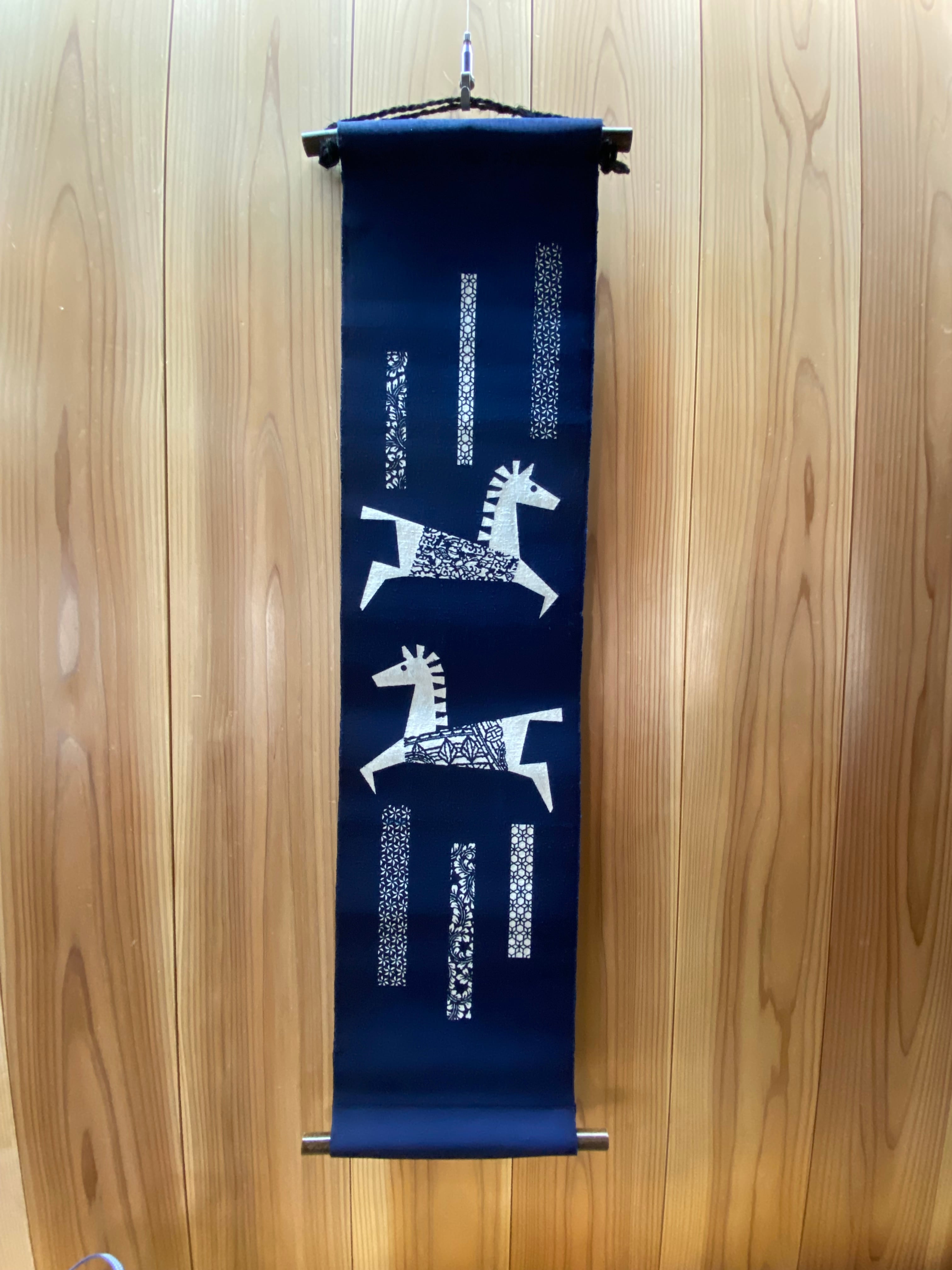 干支長尺 藍染タペストリー。